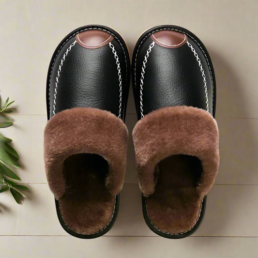 Men's Waterproof Winter Slippers – Indoor Fur-Lined, Non-Slip, Warm Home Shoes