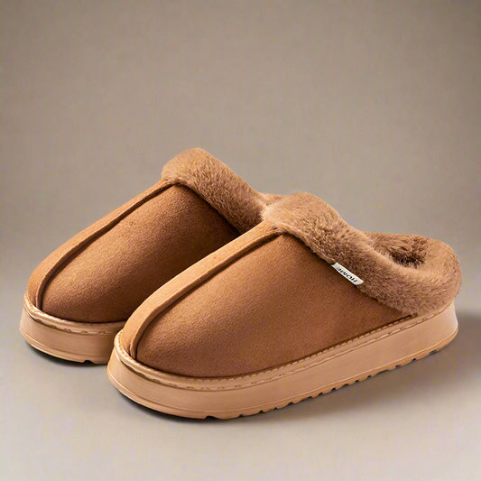Winter Indoor Slippers Thick Sole Faux Suede Anti-Slip House Shoes Plush Lining