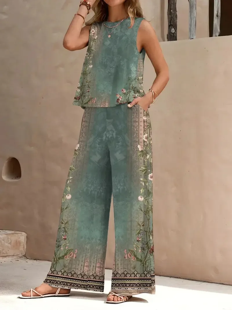 Fashionable Ethnic Style Vest & Trousers Set – Women's Geometric Suit