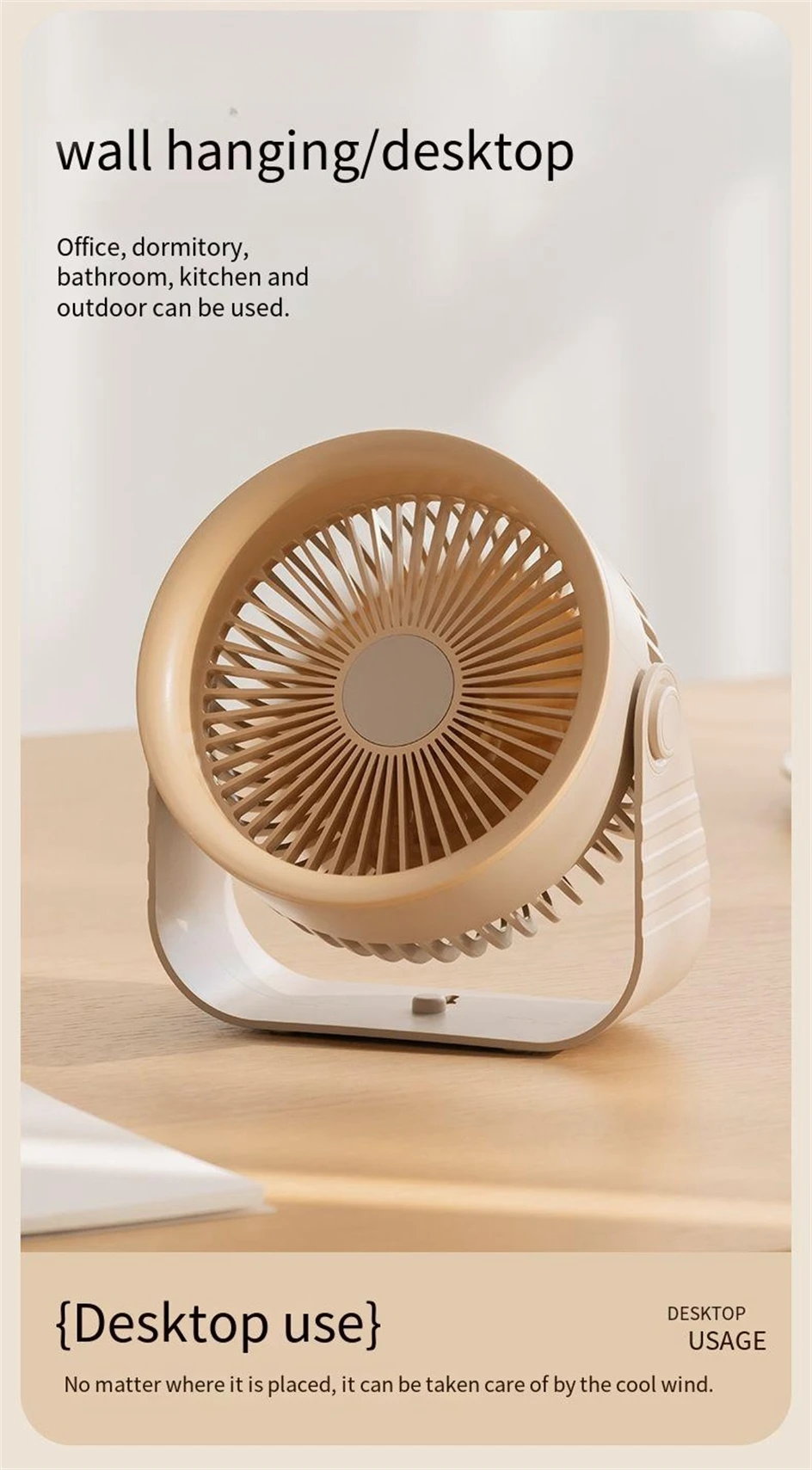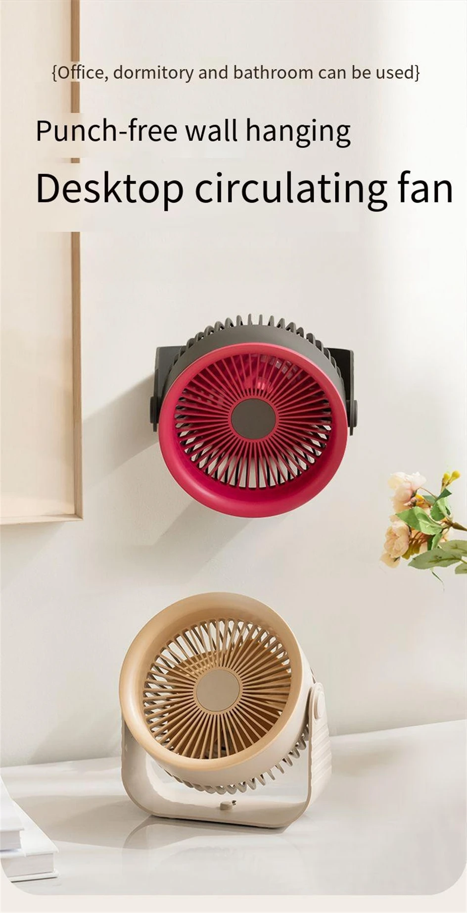 - 2-in-1 Design: Use it as a desktop fan or wall-mounted fan – perfect for small spaces (10-15㎡).