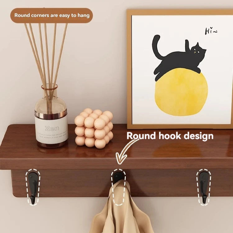 Transform your hallway or entrance into a tidy and welcoming space with this solid wood multifunctional wall-mounted coat rack. Featuring sturdy hooks and two stylish display shelves, it’s perfect for both practicality and decoration. Whether you’re hanging coats and keys or showcasing small art and figurines, this piece does it all—without drilling holes in your wall.