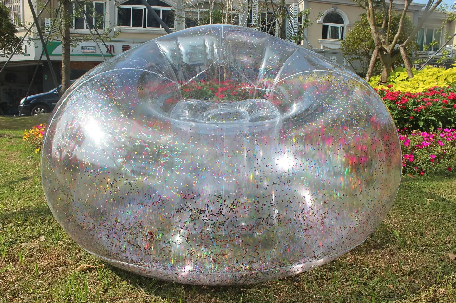 Transparent Sequin Inflatable Lazy Sofa – Stylish & Portable Lounge Chair