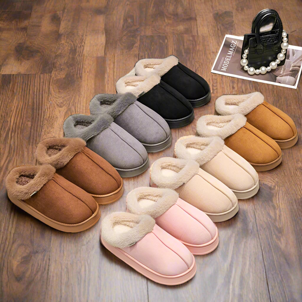 Winter Indoor Slippers Thick Sole Faux Suede Anti-Slip House Shoes Plush Lining