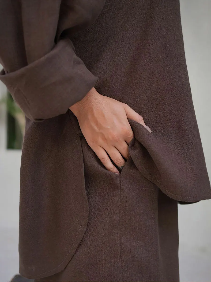 This spring-ready two-piece set is where relaxed fashion meets everyday function. Crafted from a breathable cotton-polyester blend, it offers a lightweight feel while keeping structure for that polished office look. The shirt features a regular cut with long sleeves and a turn-down collar, while the wide-leg pants provide comfort with an elastic waist. Perfect for transitioning from work to weekend, this set makes dressing easy, stylish, and versatile.