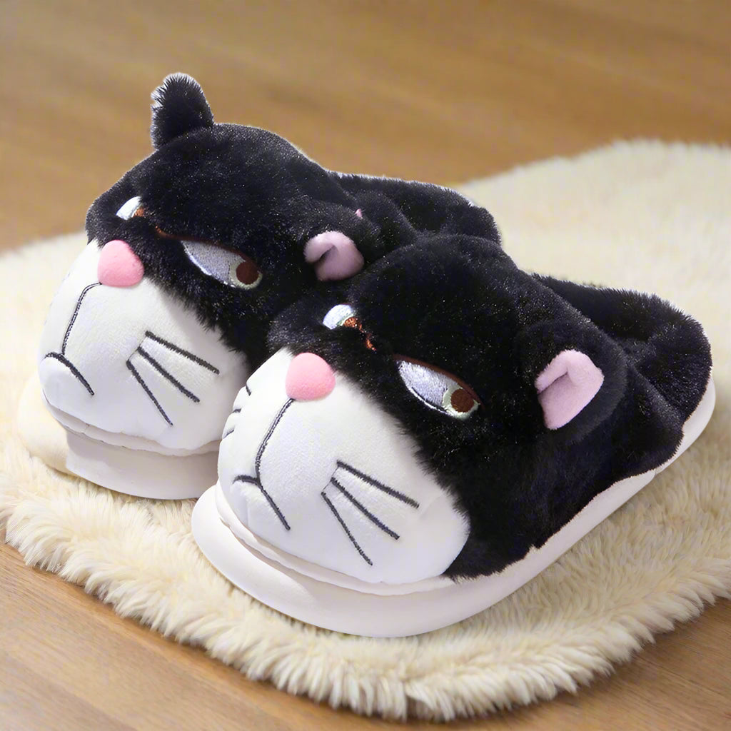 Add fun to your step with these charming cartoon cat slippers, perfect for relaxing in style. Made for warmth and comfort, each pair is lined with ultra-soft plush and features a padded insole that hugs your feet. The thick, anti-slip sole is built for safe indoor wear, while the expressive embroidery adds a playful personality to your loungewear. Whether you’re gifting a loved one or treating yourself, these slippers combine fashion and function with flair.
